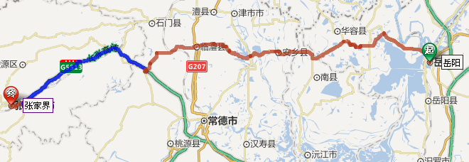 岳陽(yáng)市到張家界自駕車(chē)路線圖