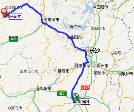 衡陽去張家界自駕車線路圖: