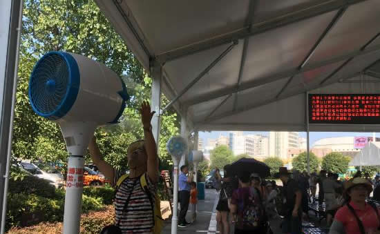為更好的為游客防暑降溫,天門山景區(qū)特別在索道站、山門等候區(qū)增設(shè)大型遮陽棚,作為游客等候休息區(qū),并在等候區(qū)內(nèi)安裝數(shù)十個室外冷霧降溫風(fēng)機和直飲水點。